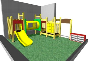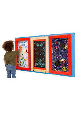 モジュール型 遊具パネルを3種類選んで、壁に設置することが可能です。