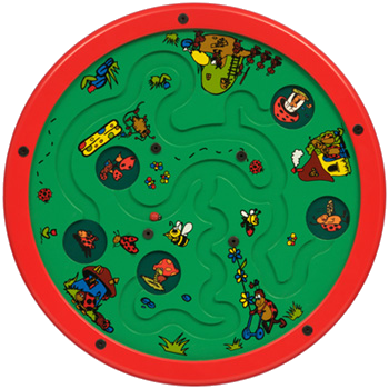 パネルを回して、てんとう虫がお散歩しながら家に帰るのを助けてあげてください。休憩した り、お友達を訪問したりと想像を広げて楽しく遊べます。 -