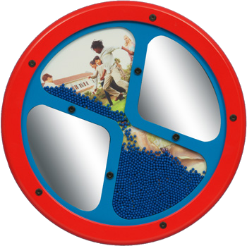 伸びたり縮んだり、横⾧に見える不思議ミラーは子供達大人気。年齢を問わず楽しめる笑顔の絶えない遊具パネルです。 -
