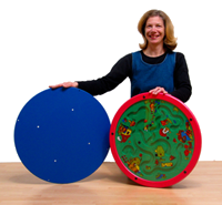 変だけど楽しい!両面からアクセスでき、複数で遊べるフリースタンド。2種類のステアリンホイール、2種類のスピンパネル(60cmラウンドアバウトパネル)、2種類のモジュールパネルが含まれています。パネル両面に描かれているカラフルなイラストは見ているだけでもワクワクします。