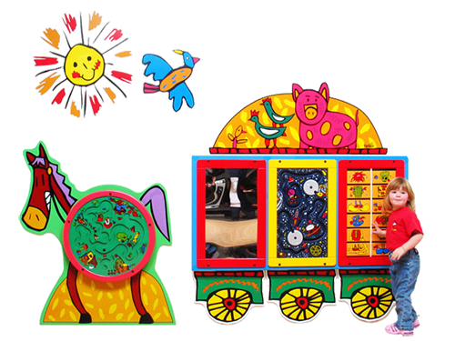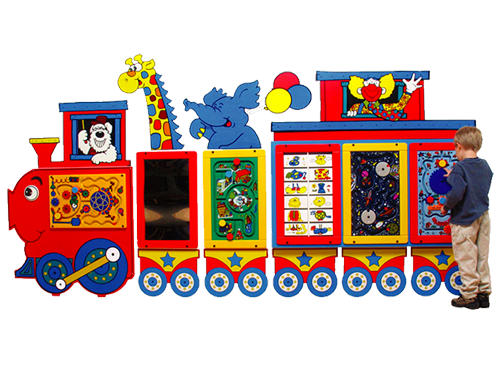 楽しいサーカストレインに、お好きなプレイモジュール遊具パネルを設置できます。予算に合わせてトレインの組み合わせも可能です。